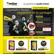 Профи Клуб „За добрите майстори“ 17.09.201407.12.201717.09.201407.12.2017г. Автор Сен-Гобен България, направление Weber От 15.09.2014г. Вебер България стартира Лоялна програма, ориентирана към „Добрите майстори“. В програмата може да се включи всеки закупил продукт, обозначен със специален стикер, съдържащ уникален код с точки. Събраните точки участниците могат да разменят срещу много и най-различни атрактивни награди. Продуктите, които Ви носят бонус точки са weber.col Профи и weber.col Флекс. За да се включите в Лоялната програма влезте в www.proficlub.bg и регистрирайте профил. За да добавите точки към профила си трябва да изтриете скреч покритието от стикера върху продукта, който сте закупили и да въведат кода. Събраните точки може да разменяте срещу избраните от вас награди. Лоялната програма на Вебер е ориентирана към – майстори, специализирани в полагането на керамични покрития, както и към частни клиенти. Браншове: Изолационни системи, Строителни фирми