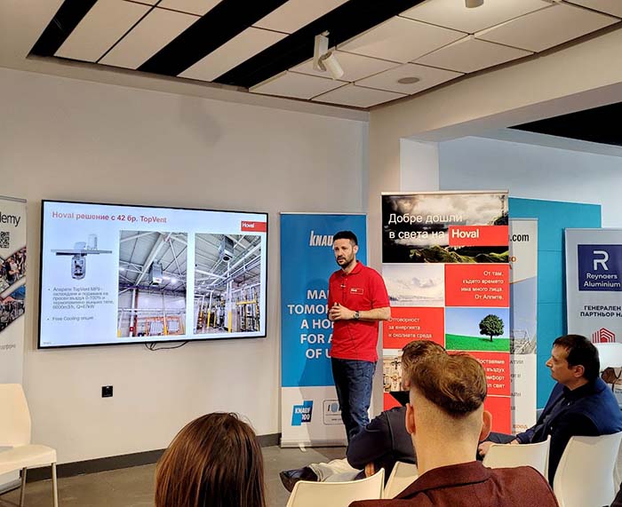 Иновативни ОВК решения за индустриални и логистични сгради представи г-н Костадин Джампалски – управител на Hoval за България, по време на форум „Индустриално проектиране, строителство и експлоатация на производствени, логистични бази и ритейл паркове“.